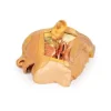 در سطح مدیال (داخلی)، مخچه و نیمکرههای مغزی بخشهایی از کالبد بدن پینهکولوزوم، تالاموس، شیارها و تاژکها قابل مشاهدهاند و قطعاتی از مخچه حذف شدهاند تا کف حفرات جمجمهای و بطن چهارم دیده شود. مدارهای عروقی و عصبی مثل سینوس کاورنوزوس، Sella Turcica و مسیر اعصاب جمجمهای II، III، V، VII–X، XI با جزئیات مناسب نمایش داده میشوند.