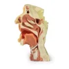 در بخش عمیقتر، ساختارهای اعصاب، شریان کاروتید داخلی و عضلات گردنی مثل میلوهیوئید و انقباضکنندههای حلقی مشخص هستند. سطح برش شامل دیوارههای جانبی حفره بینی، سینوسها (سینی)، دهان، حلق و بخشهایی از ستون مهرهای نیز قابل مشاهدهاند، که این مدل را برای آموزش آناتومی سر و گردن بسیار ارزشمند میسازد.