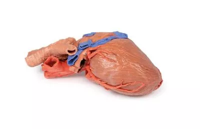 این مدل آناتومیک ۳D چاپشده، نمای بسیار دقیق آناتومی قلب و بخش پایینی نای را در فضای پشت قفسه سینه نشان میدهد. در آن، قلب همراه با مورفولوژی خارجی و ارتباطش با عروق بزرگ در مدیاستینوم خلفی قابل مشاهده است. دریچههای سمیلوندار ریوی (pulmonary) با حذف ساقه ریوی قابل دیدناند و همچنین پنجرهای در دهلیز راست باز شده تا دریچه تریکوسپید (سهلتی) و مسیر ورود به بطن راست مشخص شود.